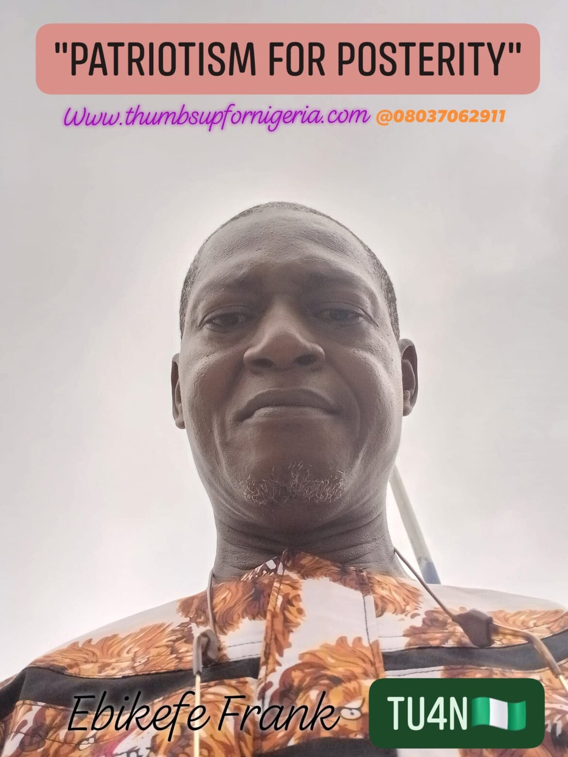 “PATRIOTISM FOR POSTERITY” suggests a sense of national pride and responsibility that extends beyond the present generation, prioritizing the well-being and prosperity of future generations. It’s a noble sentiment that can inspire individuals to work towards creating a better country for those who come after us.”- Frank P Ebikefe