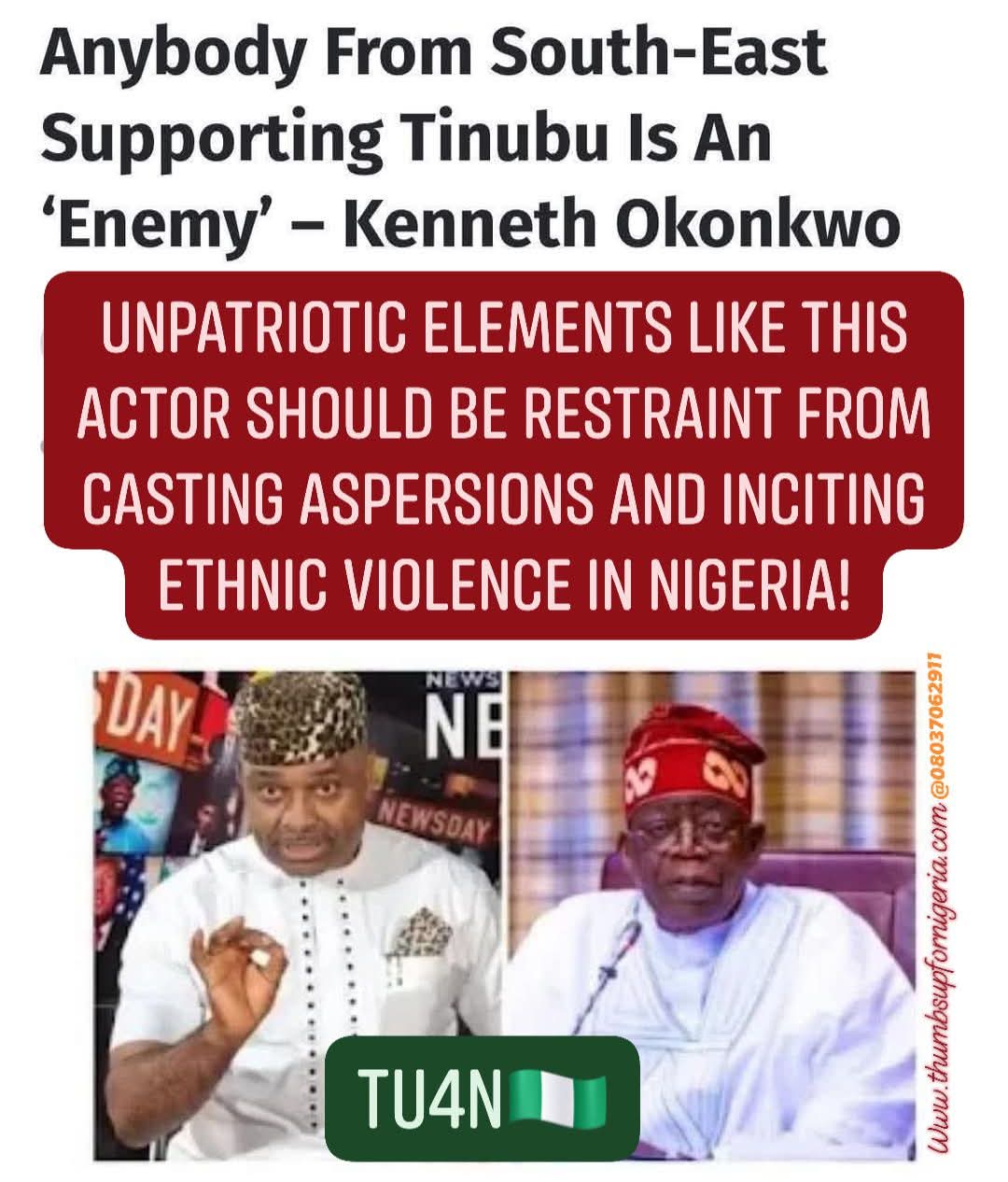 Enough of this Nollywood actor thinking Nigeria is a stage where he can play out script of insurrectionist that is intended to harm real human lives from breeding ethnic hate to disterbilise Government and our sovereignty along ethnic lines!