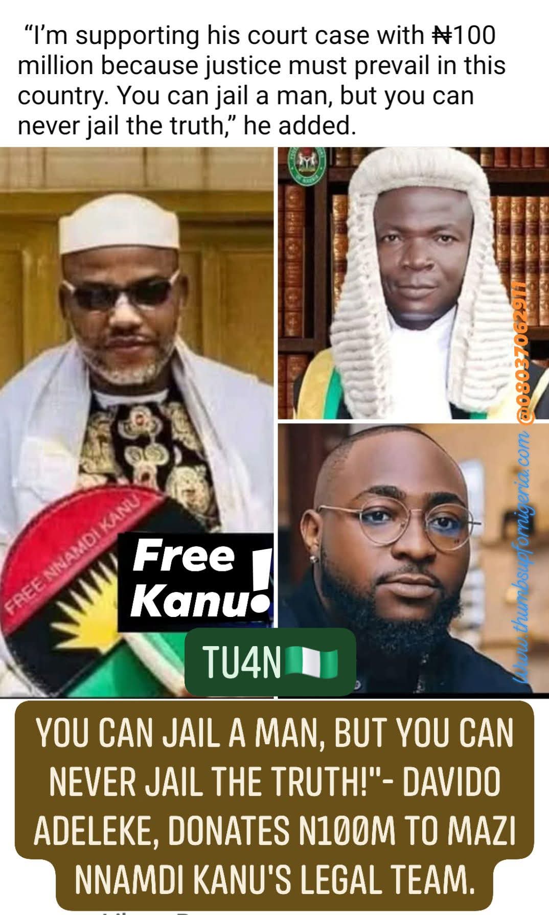 You can jail a man, but you can never jail the truth!- Davido.