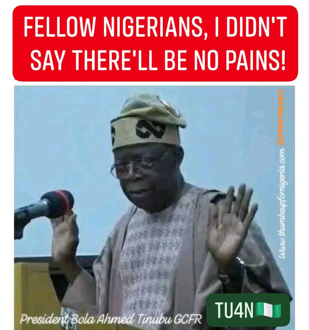 Dear compatriots, in our slowly but surely fixing of Nigeria with President Bola Ahmed Tinubu GCFR, please Let’s go by the good old nexus which says “No Pain, No Gain!”- TU4NπŸ‡³πŸ‡¬