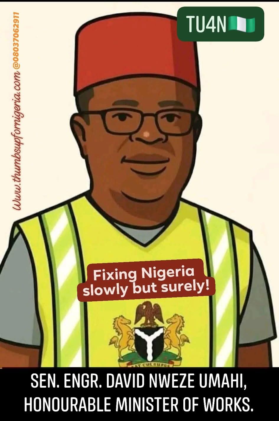 Sen. Engr. David Nweze Umahi former Governor of Ebonyi State (2015 to 2023) and the current Minister of Works is patriotically fixing Nigeria with President Bola Ahmed Tinubu GCFR slowly but surely.