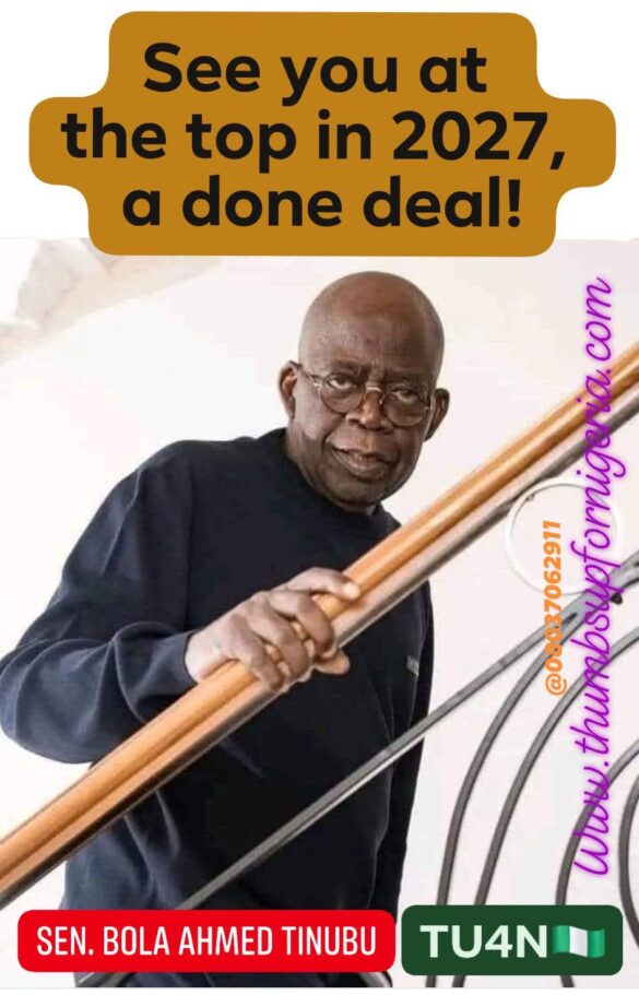 Senator Bola Ahmed Tinubu GCFR, President of the Federal Republic of Nigeria and a top contender for a second term 2027! #Èmilokan2 in the making….”- TU4N🇳🇬.