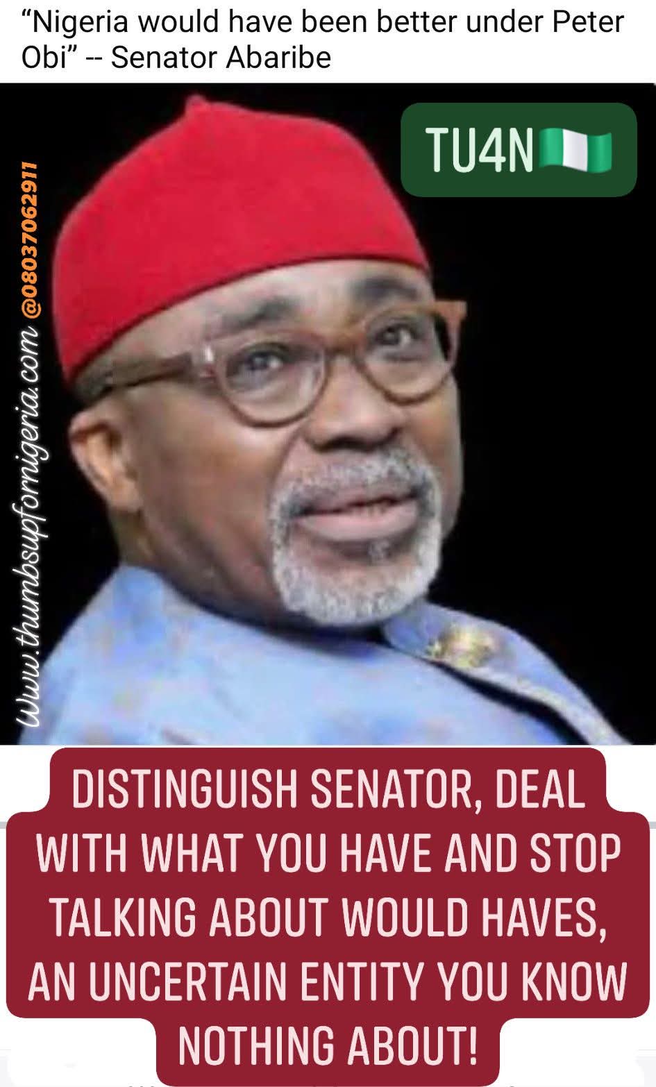 We wish to call on our amiable and distinguish Sen Eyinnaya Abaribe to please face the reality before him, using the instrumentality of the Red Chambers to bring about dividends of Democracy and much needed reforms to his constituency, Nigeria et al.